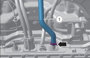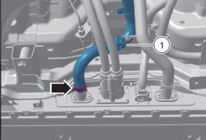 ③斷開(kāi)電池高壓線(xiàn)束連接插頭(箭頭B)