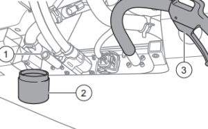 ①將氣動(dòng)噴槍軟管3安裝至動(dòng)力電池系統(tǒng)總成進(jìn)水口上。